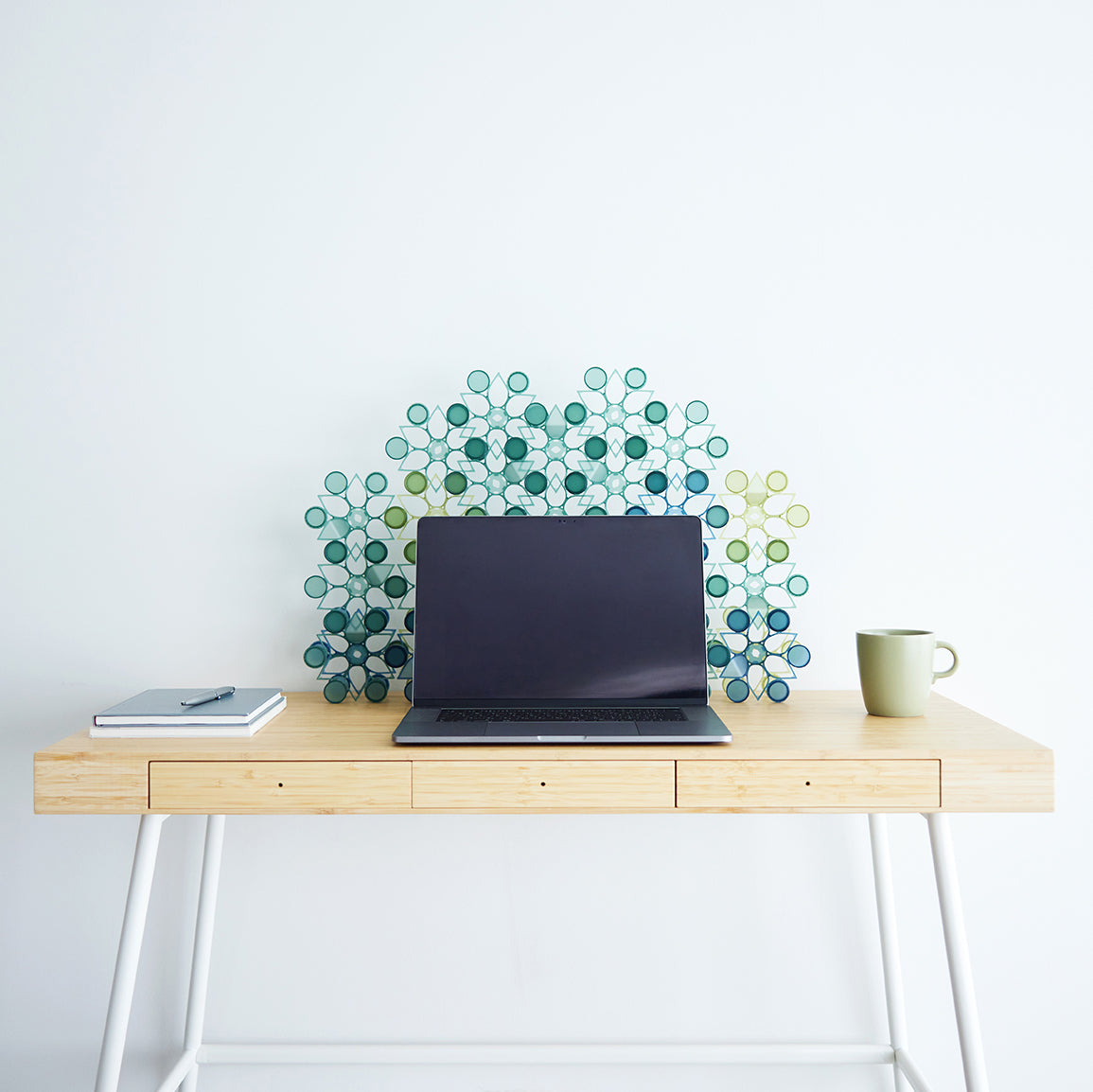 TSUMICA(ツミカ)は組み合わせ方次第で自由にかたちをアレンジできるユニット式パーテーション。 半透明の素材で緩やかに空間を仕切ります。 ウォールアートやオブジェのように飾ることも可能です。