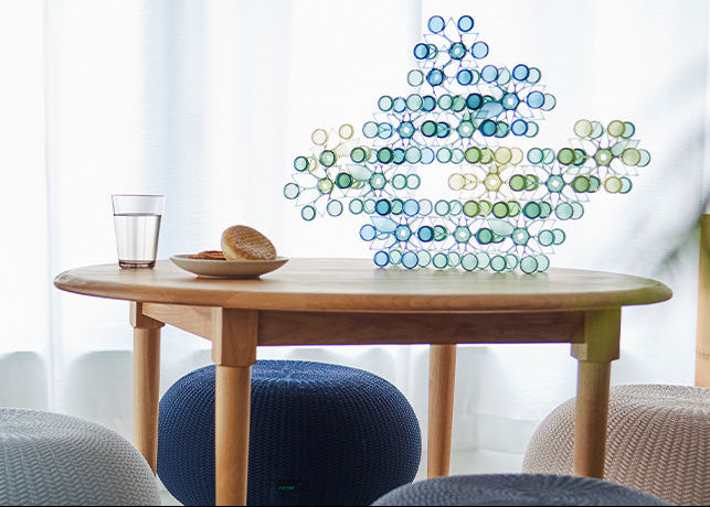 TSUMICA(ツミカ)は組み合わせ方次第で自由にかたちをアレンジできるユニット式パーテーション。 半透明の素材で緩やかに空間を仕切ります。 ウォールアートやオブジェのように飾ることも可能です。