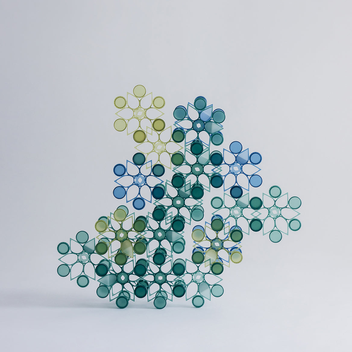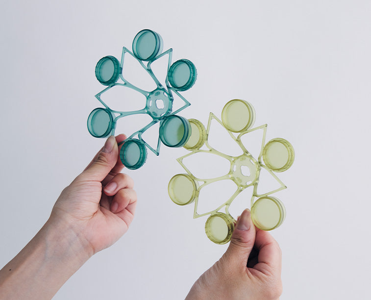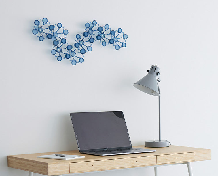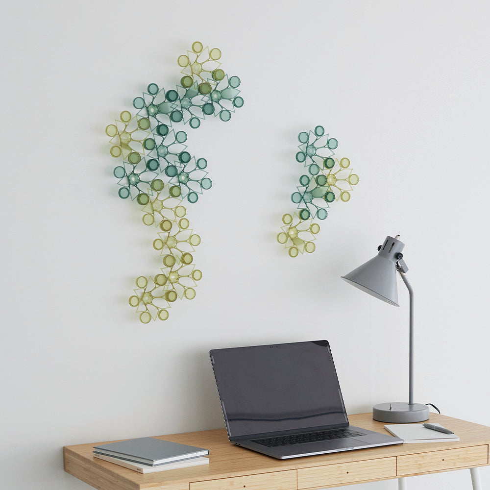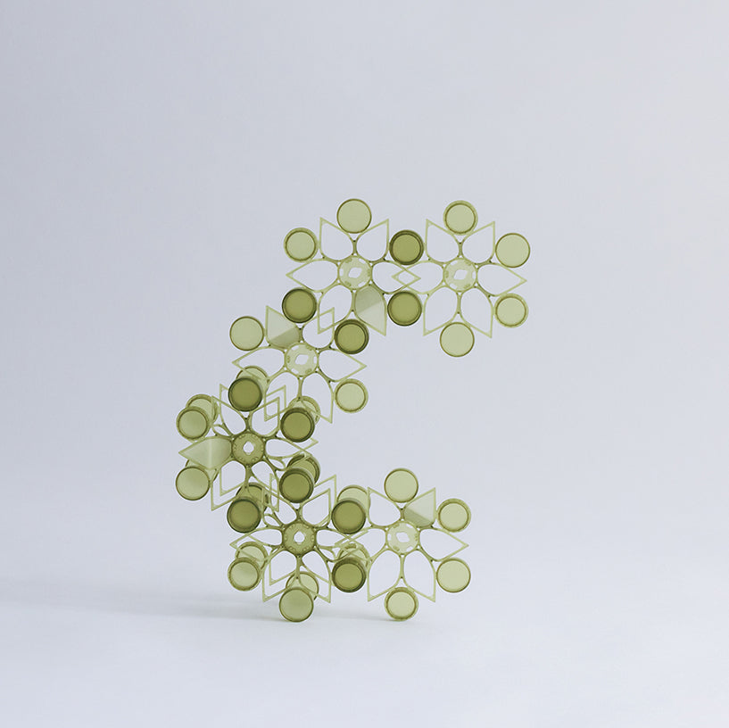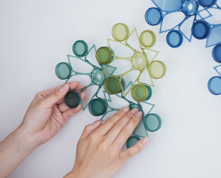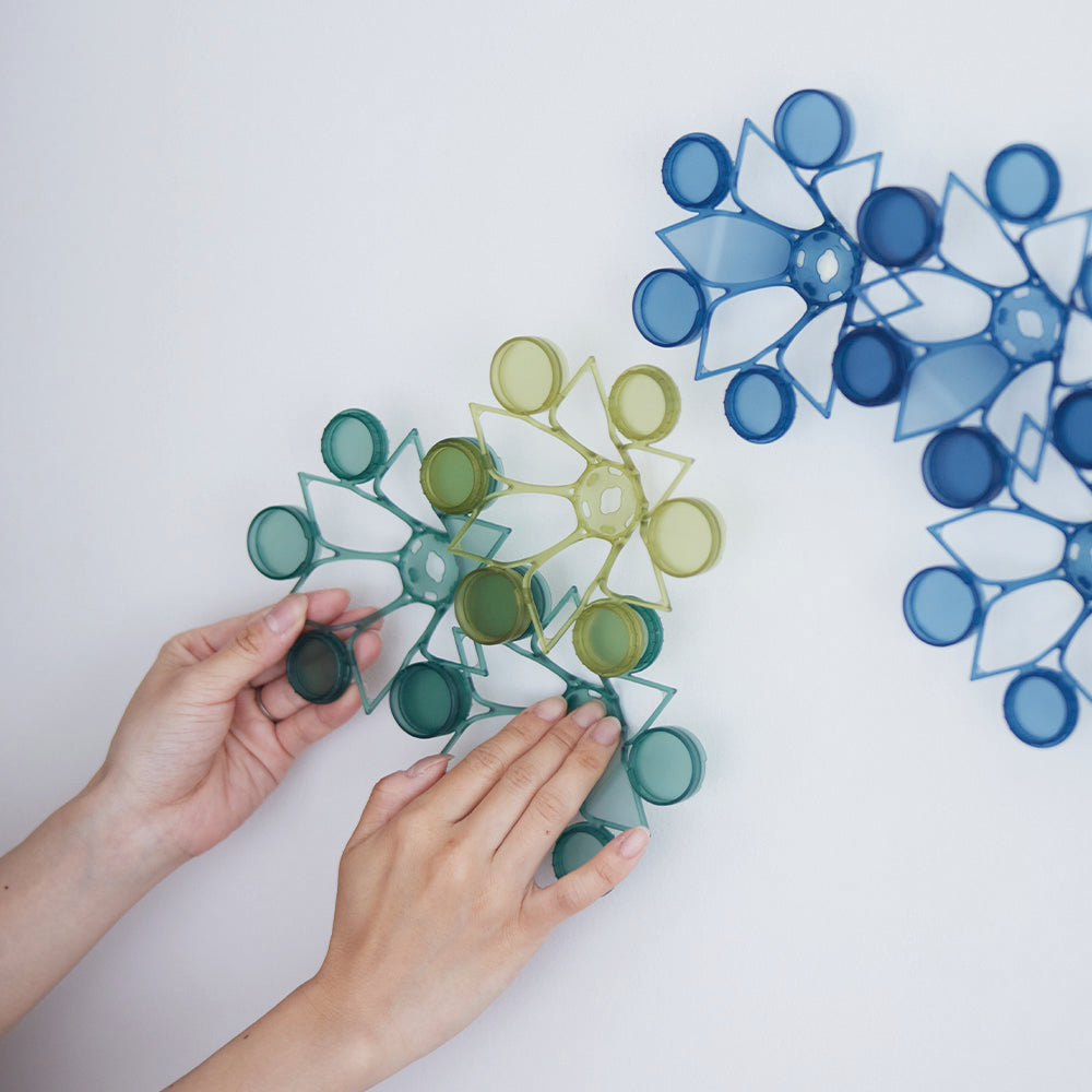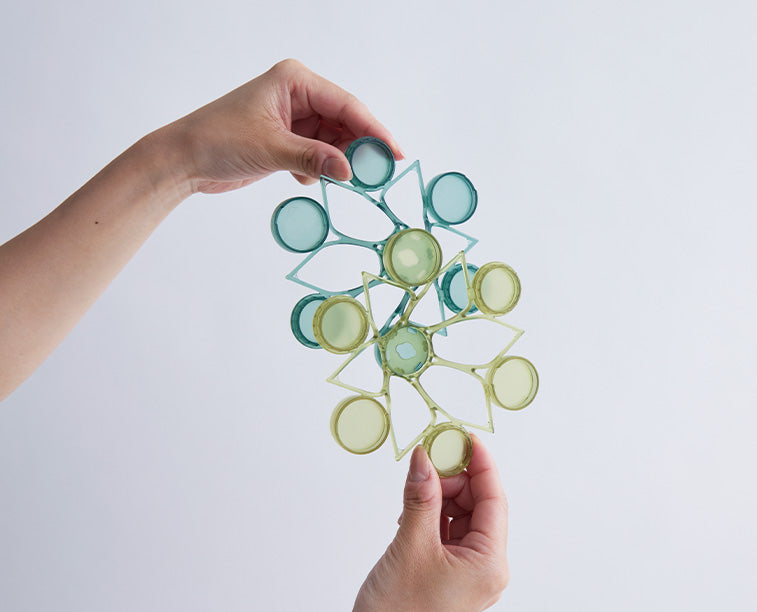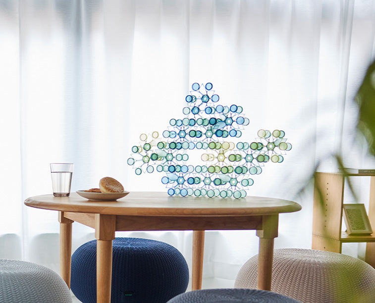 TSUMICA(ツミカ)は組み合わせ方次第で自由にかたちをアレンジできるユニット式パーテーション。 半透明の素材で緩やかに空間を仕切ります。 ウォールアートやオブジェのように飾ることも可能です。