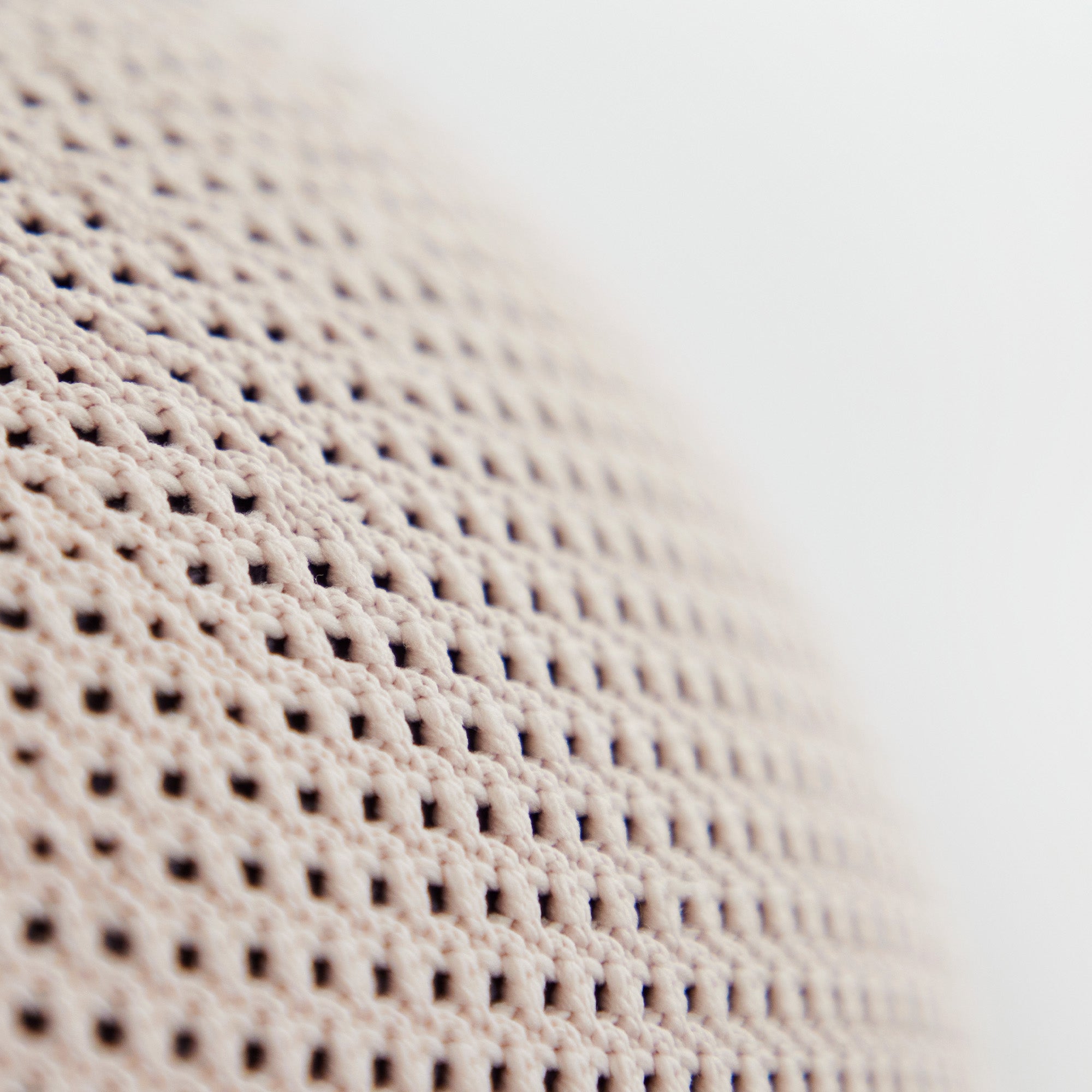 座椅由 3D 針織製成,並有漂亮的網眼,方便坐上去。充分利用天然木材的自然紋理的腿與房間的內部融為一體。