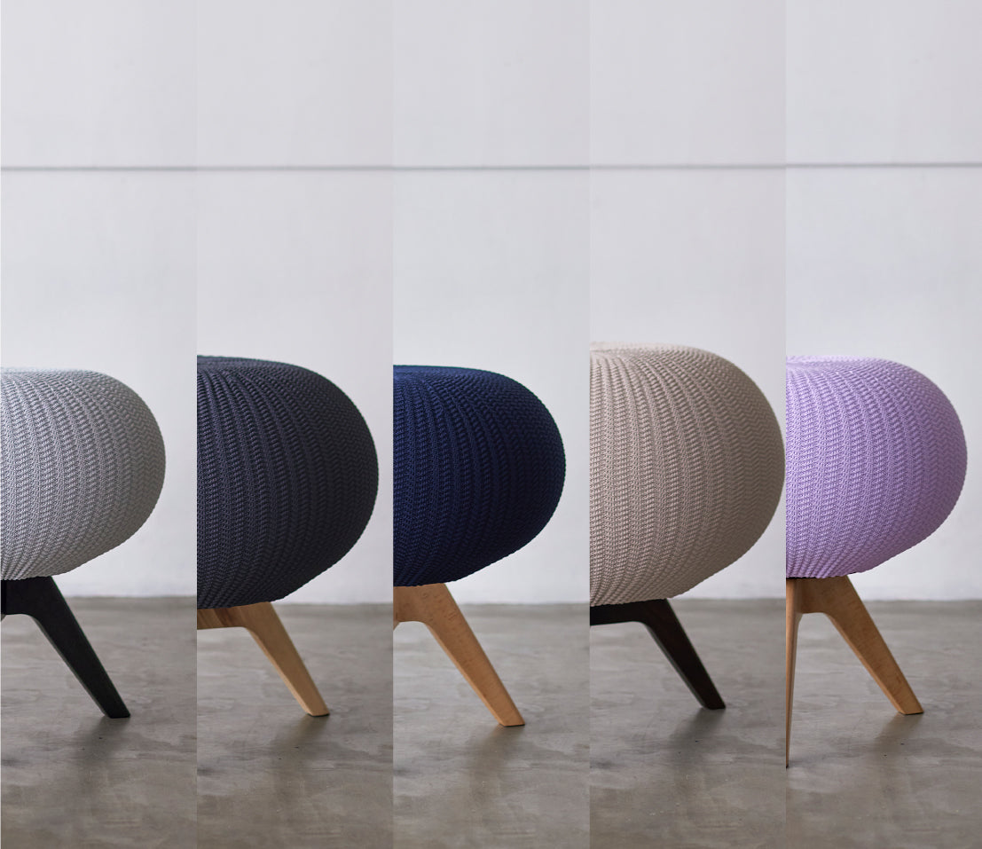 座椅由 3D 針織製成,並有漂亮的網眼,方便坐上去。充分利用天然木材的自然紋理的腿與房間的內部融為一體。